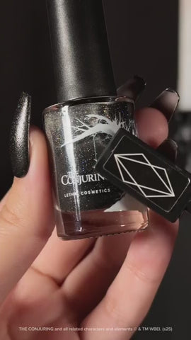 Black with silver magnetic effect and bewitching holo particles. Opaque with 1-2 coats.