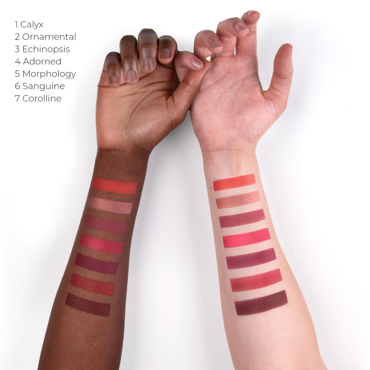 CI 77019 (Mica), Magnesium Stearate, Kaolin, Zinc Stearate, Dimethicone, Caprylic/ Capric Triglyceride, Dimethicone/ Vinyl Dimethicone Crosspolymer, Phenoxyethanol, Dimethicone Crosspolymer, Silica, Ethylhexylglycerin. [+/- (May Contain): Synthetic Fluorphlogopite, CI 77891 (Titanium Dioxide), CI 77499, CI 77492, CI 77491 (Iron Oxides), CI 778161 (Tin Oxide), CI 77007 (Ultramarines), CI 77288 (Chromium Oxide Greens), CI 77742 (Manganese Violet), CI 42090 (Blue 1 Lake), CI 16035 (Red 40 Lake), CI 19140 (Yellow 5 Lake), CI 15850 (Red 7), CI 45410 (Red 27 Lake)]