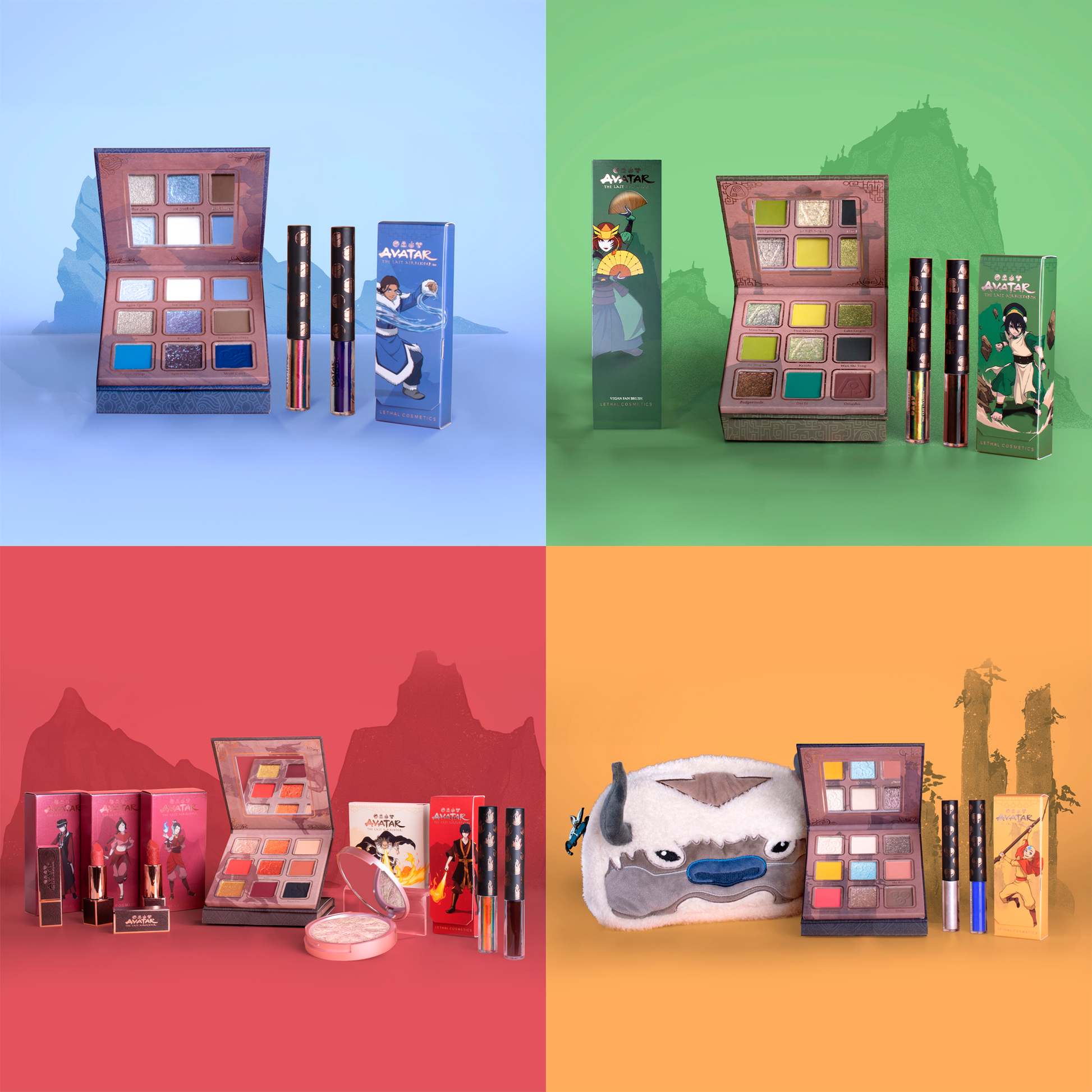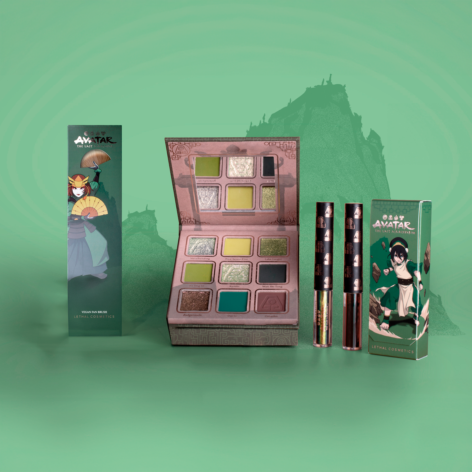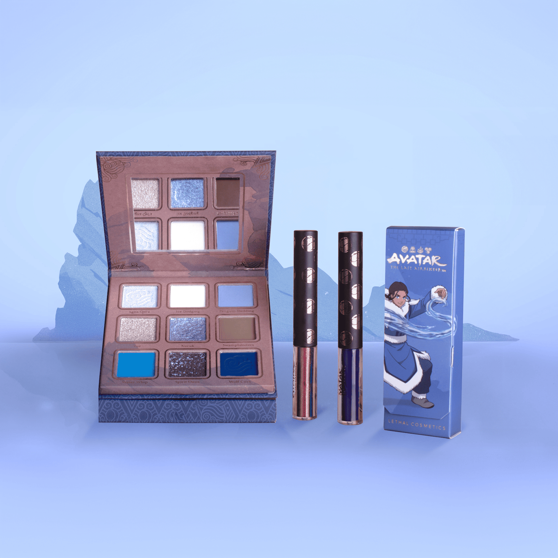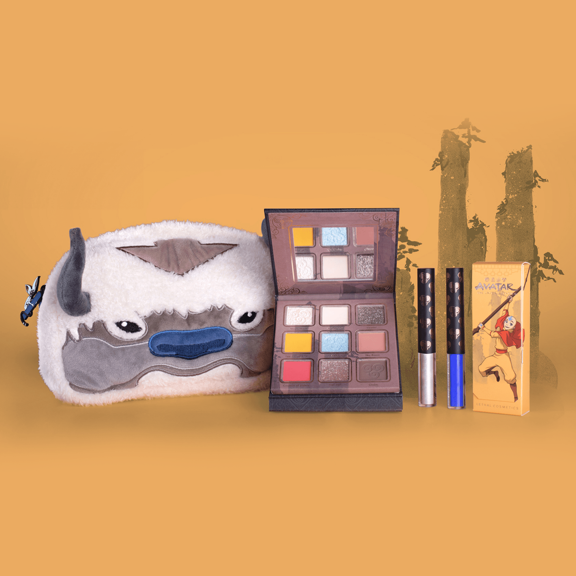 A bundle consisting of the entire Lethal Cosmetics x Avatar the Last Airbender Collection: all four element palettes, all four liner sets, 3 lipsticks, the White Lotus highligher, Suki Fan Brush and of course the Appa makeup bag.