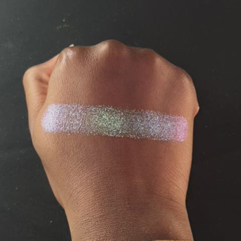 Trichrome with a sparkly metallic finish, that shifts green, blue, plum.