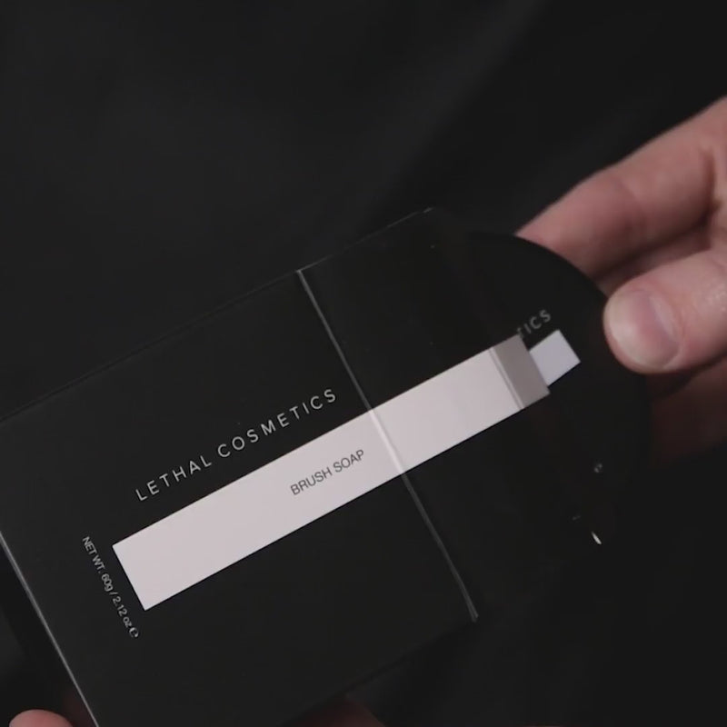 Brush Soap - Wet your brush with water and swirl over the soap until enough lather is activated. Use the intergated silicone pad to get your brushes squeaky clean!