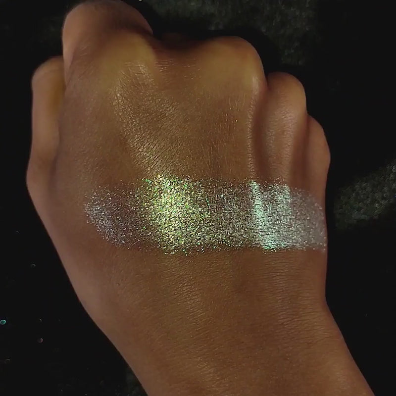 Trichrome with a metallic finish and a translucent base that shifts gold, teal, blue.