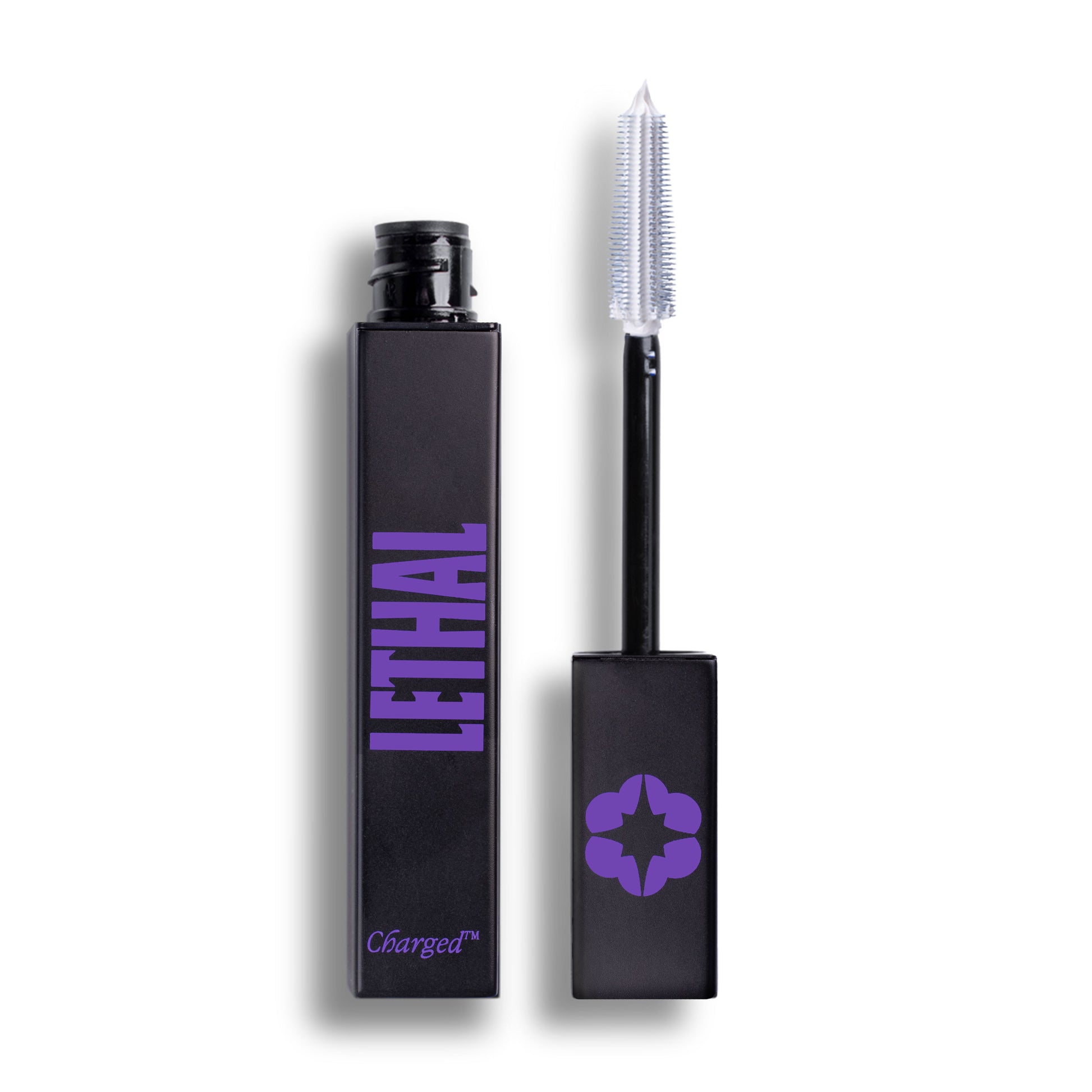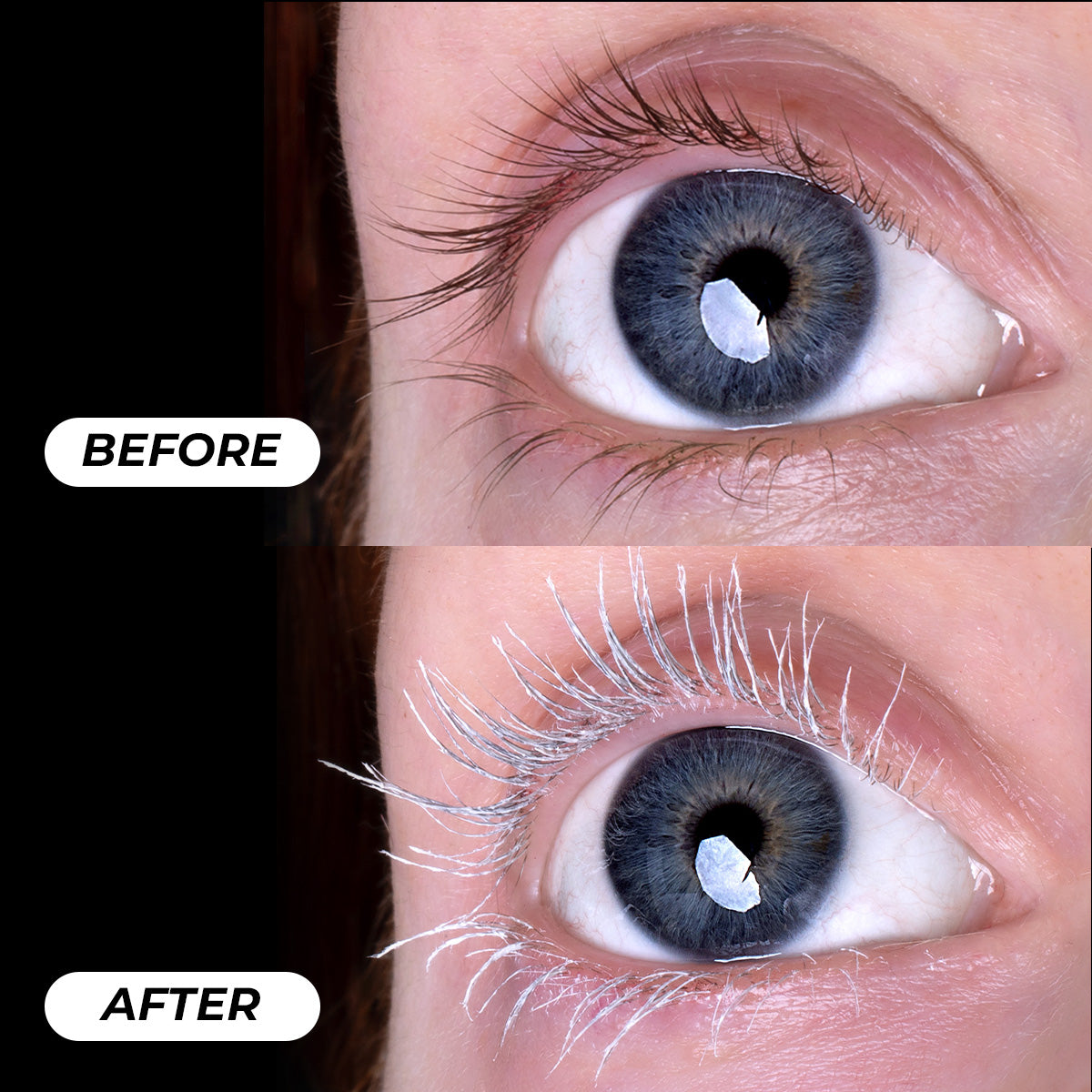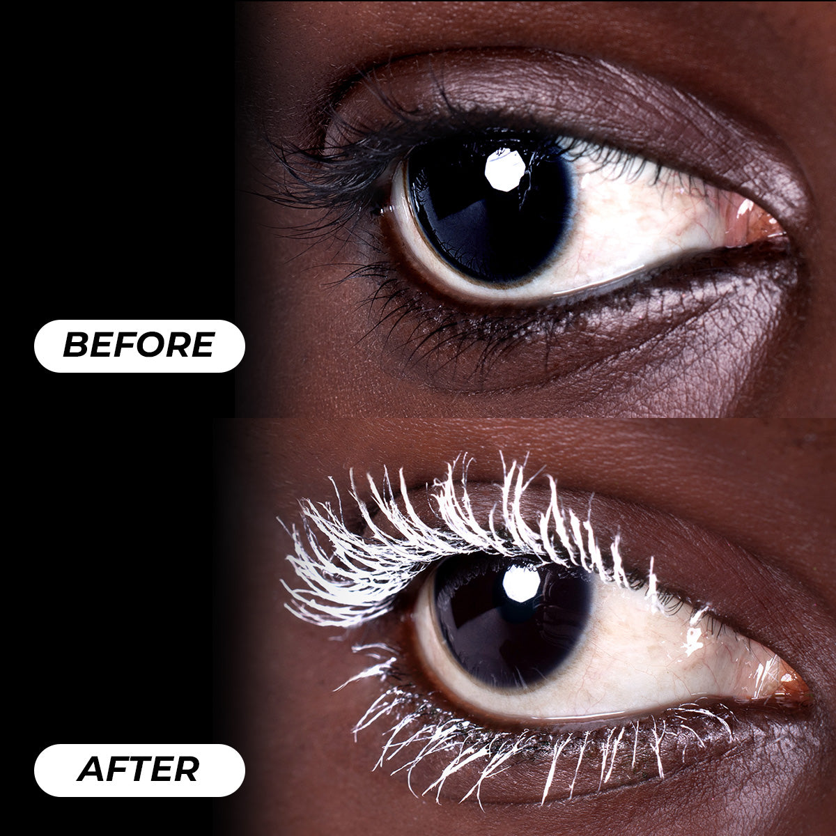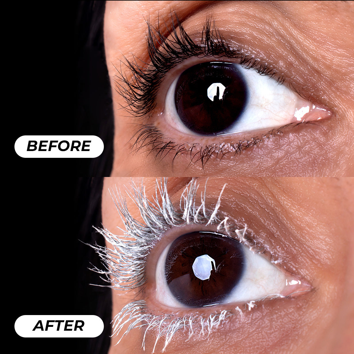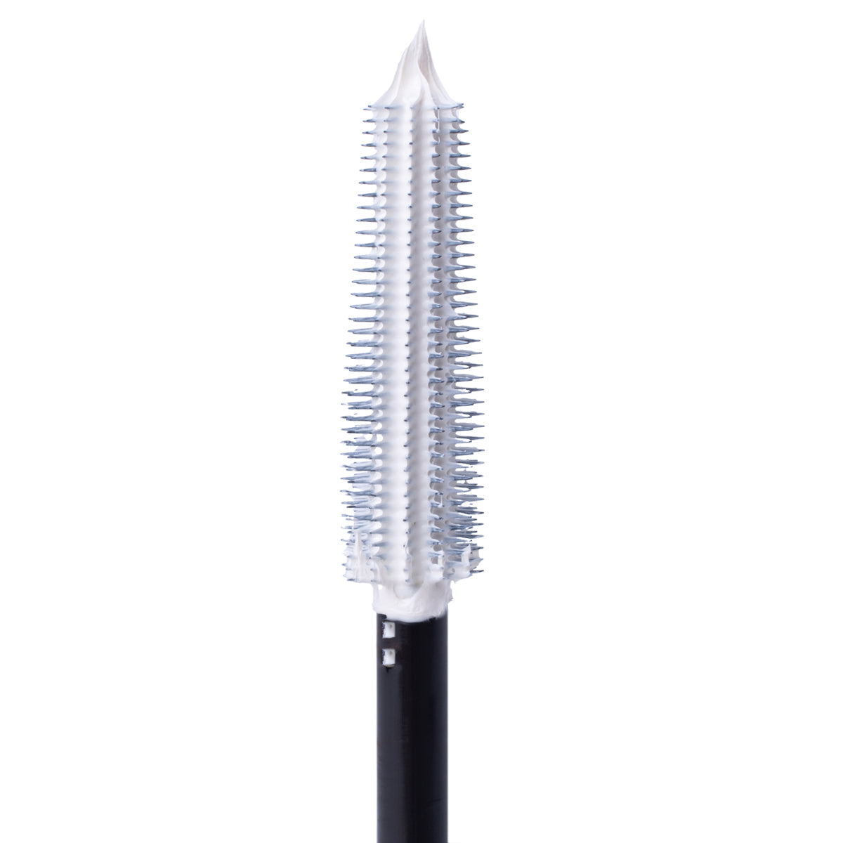 Hold the brush at the base of your lashes and sweep up and through to the tips. For great separation and length, avoid wiggling. Use the narrower end of the brush for your lower lashes.