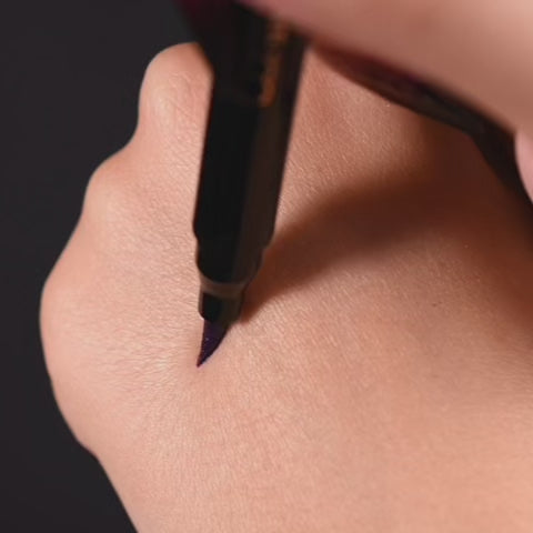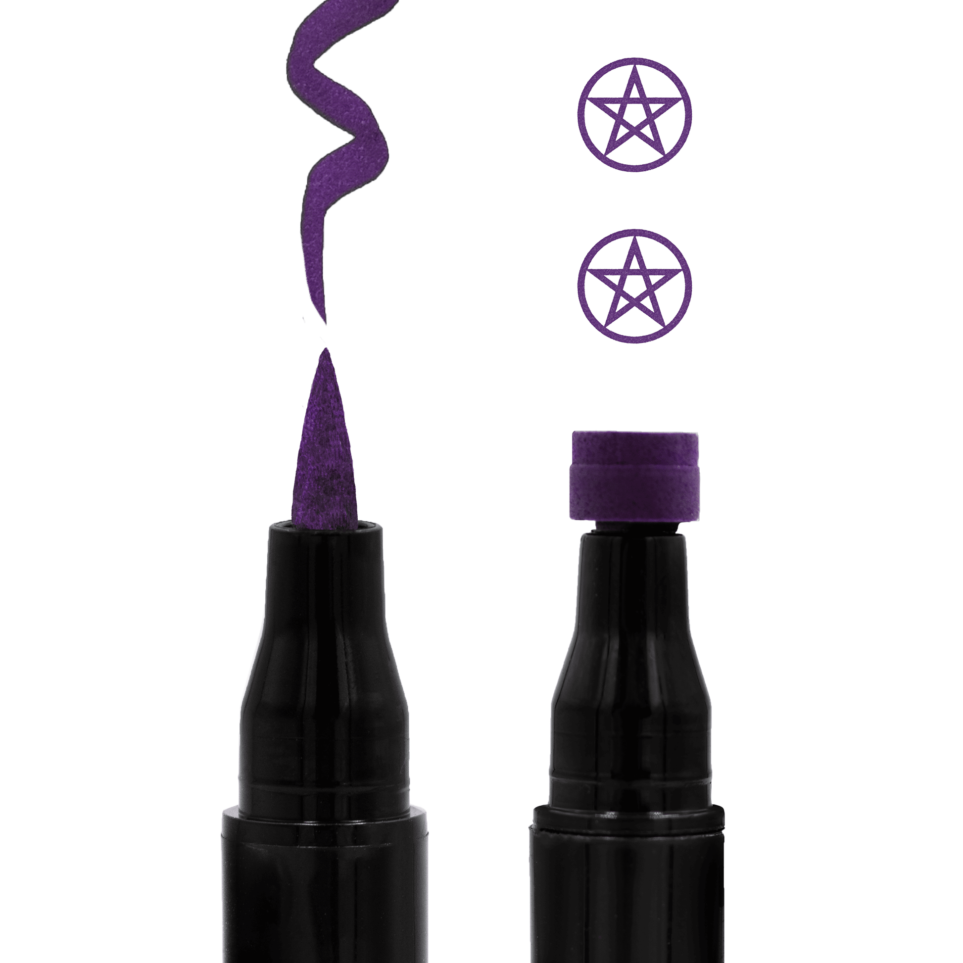 Double-ended plum eyeliner pen with a pentagram stamp.