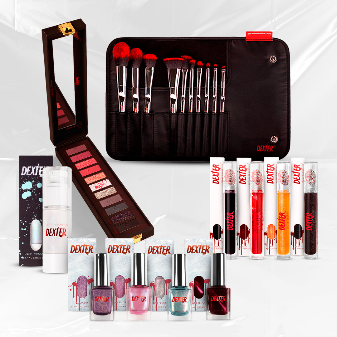 Explore the dark and captivating world of Dexter with this exclusive makeup collection, featuring the Dexter Palette, Kill Tools Brush Set, and more.