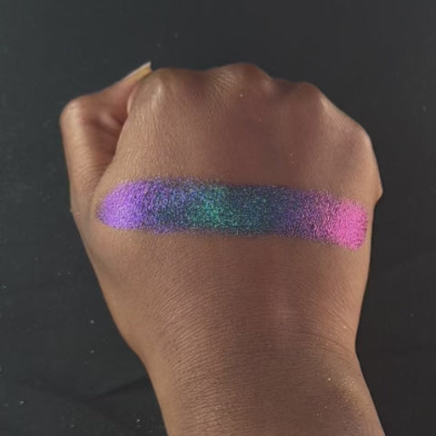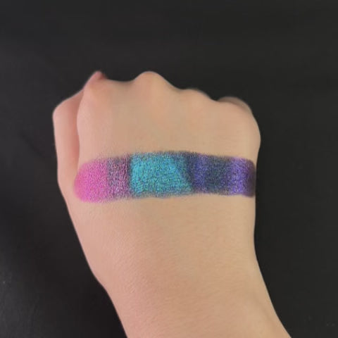 Multichrome with a metallic finish that shifts deep blue, teal, purple, orange, olive green.
