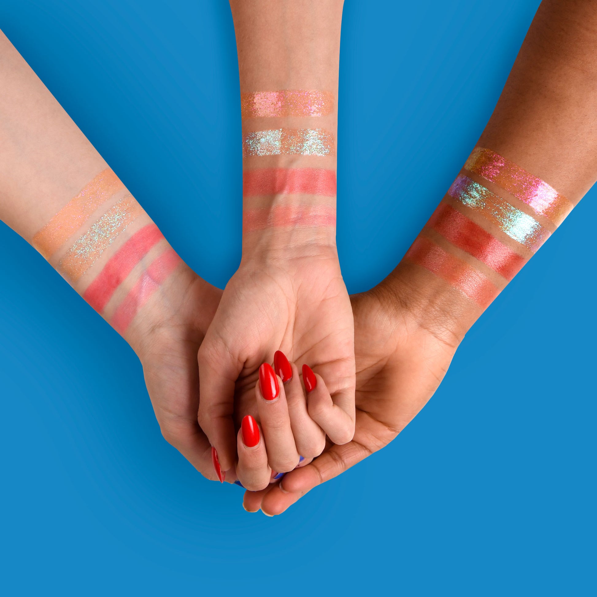 A lip gloss inspired by Finn the Human, packed with light blue/aqua/purple color-shifting sparkles.