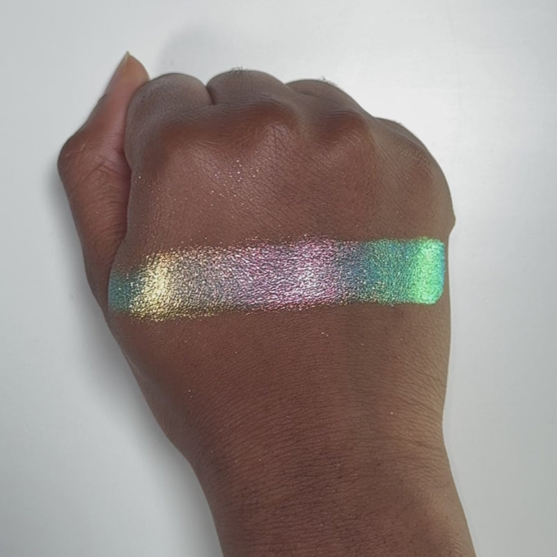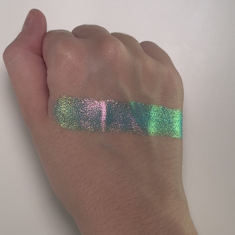 Multichrome with a sparkly metallic finish that shifts gray, blue, green, pink, gold.