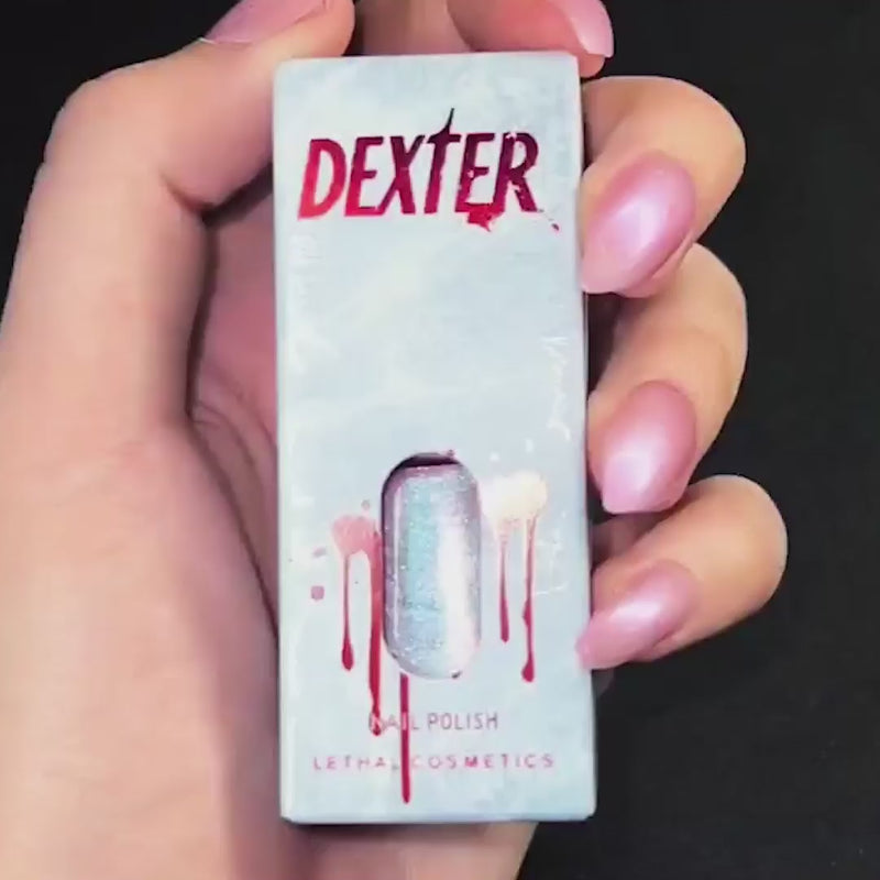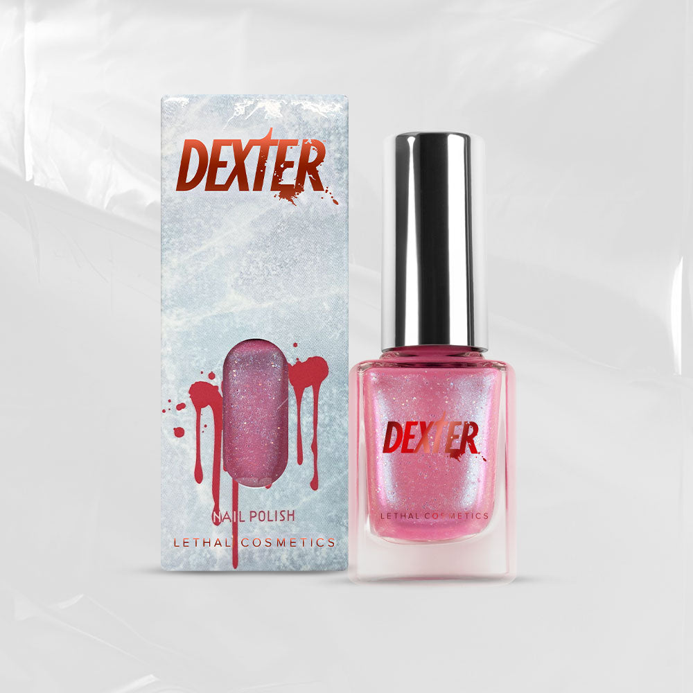 Sheer pink/blue duochrome with holo particles. Buildable opacity.