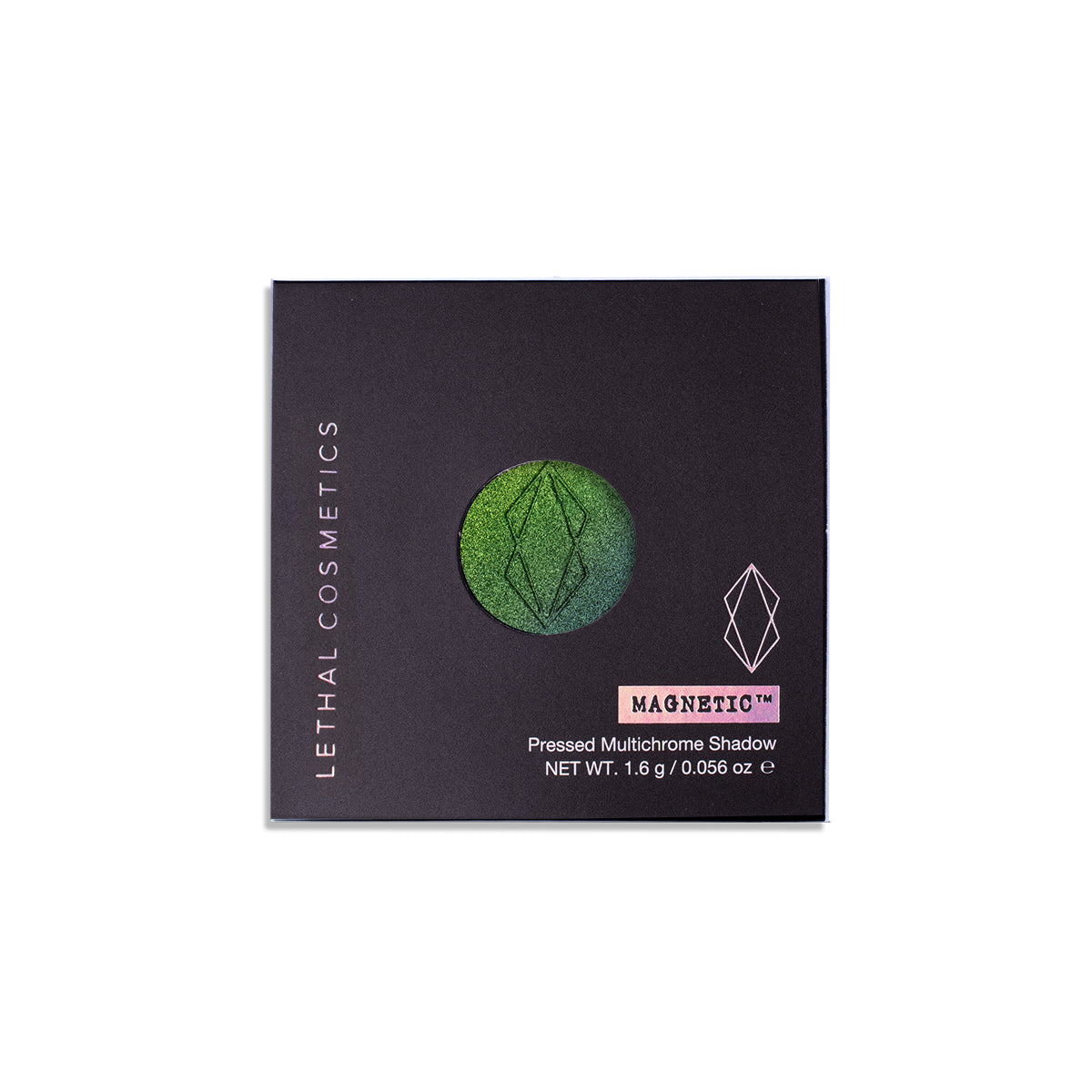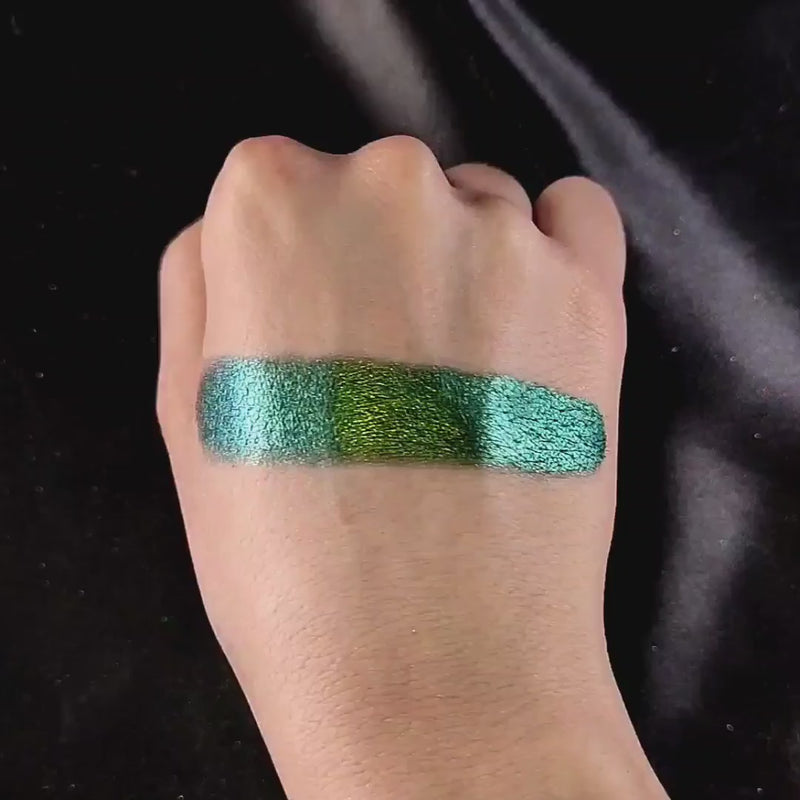 Multichrome with a metallic finish, that shifts navy blue, teal, emerald green, lime green.
