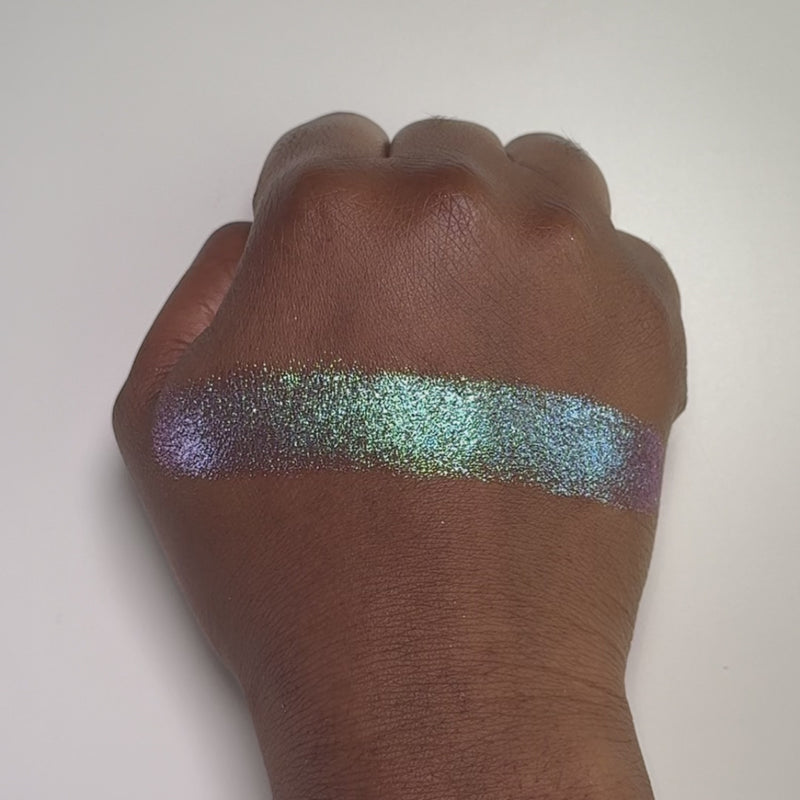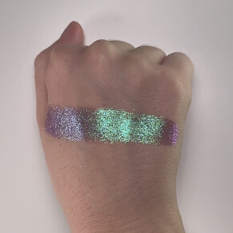 Trichrome with a sparkly metallic finish, that shifts purple, blue, green.