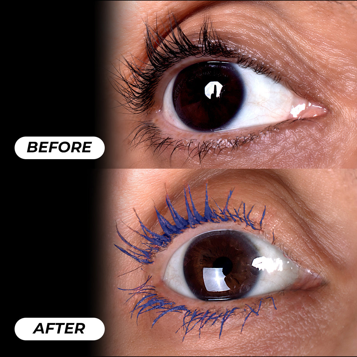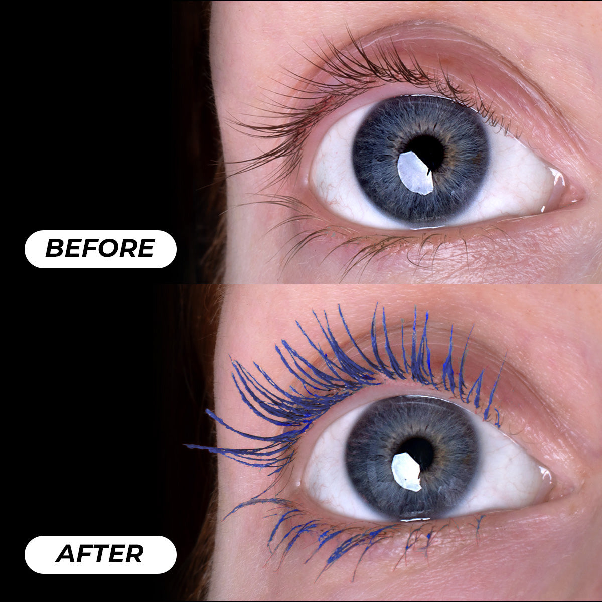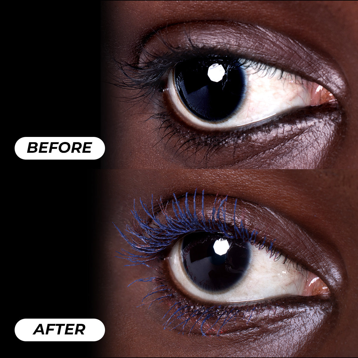 Hold the brush at the base of your lashes and sweep up and through to the tips. For great separation and length, avoid wiggling. Use the narrower end of the brush for your lower lashes.
