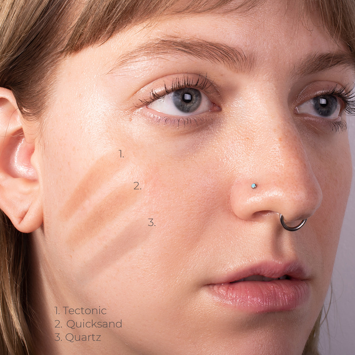 CI 77019 (Mica), Magnesium Stearate, Kaolin, Zinc Stearate, Dimethicone, Caprylic/ Capric Triglyceride, Dimethicone/ Vinyl Dimethicone Crosspolymer, Phenoxyethanol, Dimethicone Crosspolymer, Silica, Ethylhexylglycerin. [+/- (May Contain): Synthetic Fluorphlogopite, CI 77891 (Titanium Dioxide), CI 77499, CI 77492, CI 77491 (Iron Oxides), CI 778161 (Tin Oxide), CI 77007 (Ultramarines), CI 77288 (Chromium Oxide Greens), CI 77742 (Manganese Violet), CI 42090 (Blue 1 Lake), CI 16035 (Red 40 Lake), CI 19140 (Yellow 5 Lake), CI 15850 (Red 7), CI 45410 (Red 27 Lake)]